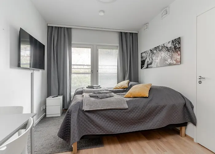 Os quartos do Laadukas Kalustettu Yksioe Logomolla 1-2Hloe Apartamento incluem cozinha equipada, que está equipada com forno e máquina de lavar loiça. O aeroporto mais próximo é em Turku, a 5 km deste alojamento e a estação de autocarros Yrjaenaenaukio fica a 250 metros de distância.